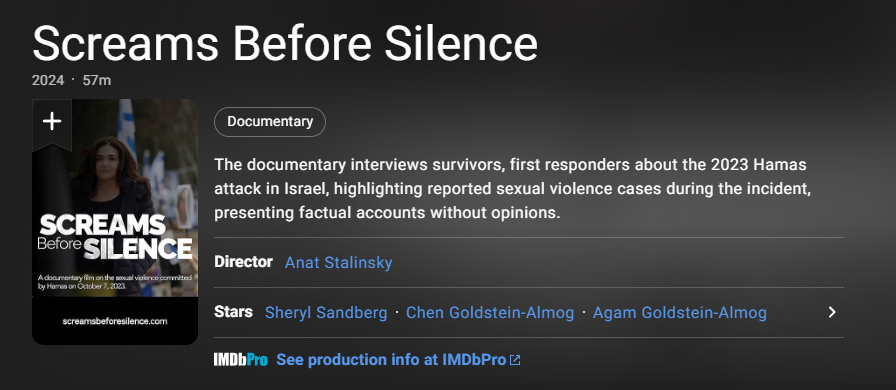 A prime example of this is Screams Before Silence, a 57-minute long attempt to give new life to the claims of mass sexual violence allegedly perpetrated by Palestinian resistance fighters on October 7th.