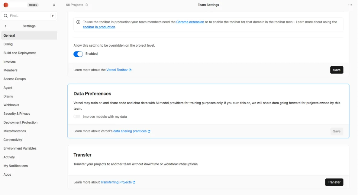 Opt out now, before you forget. Go to your Vercel account settings and disable the AI training data opt-in before March 31st, 2026 at 11:59 PM PST.
